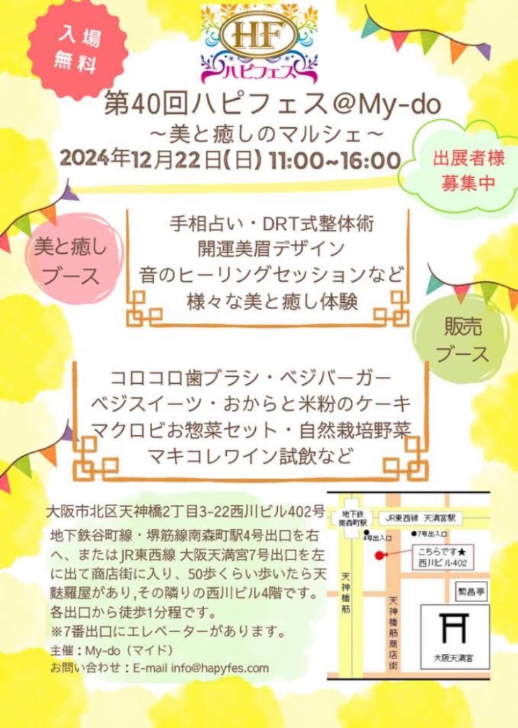 22日、南森町駅徒歩4分のところにある西川ビルで今年最後のマルシェに参加します😊